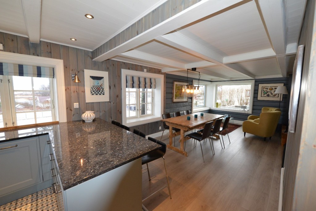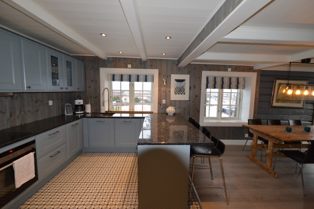The home contains: 1st floor: Hallway, large bathroom, laundry room, 1 bedroom, large kitchen with all amenities and plenty of equipment, glassware, tableware and cutlery. Dining room can be set for 20 people. Living room with exit to terrace and nice view of Stavern harbor and Svenner lighthouse. 2nd floor: Hallway, WC, large beautiful bathroom with large shower and bathtub, 5 spacious bedrooms with double beds, one with corner lounge in addition that can be converted into a double bed.